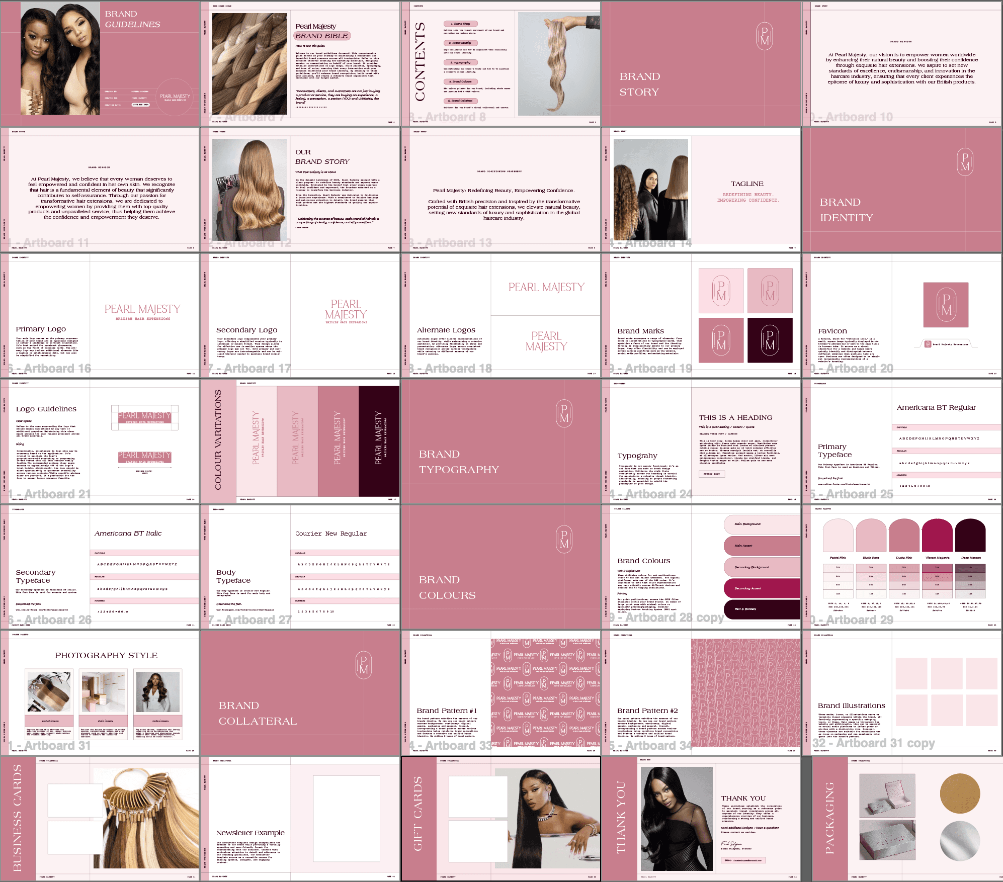 Pearl Majesty operates in the competitive world of luxury hair extensions, where trust, quality and aesthetic credibility are essential. The brand required a clearer, more cohesive visual direction to strengthen its positioning and stand confidently within the beauty industry. We developed a structured brand guideline system that refined the colour palette, enhanced typographic consistency and introduced distinctive pattern elements to elevate recognisability. From packaging to digital presence, every touchpoint was aligned to communicate quality, confidence and sophistication. The outcome is a cohesive brand ecosystem that supports both direct-to-consumer sales and professional salon partnerships.