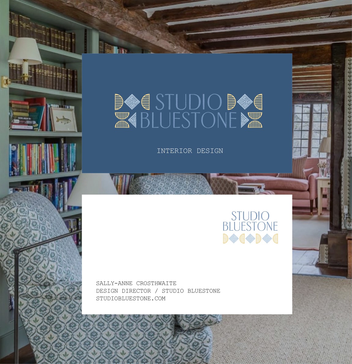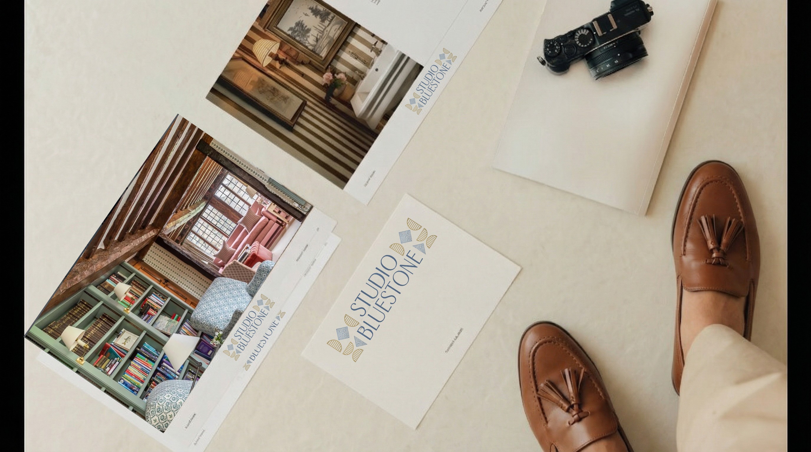 Beyond the logo, we developed a cohesive visual system that supports the studio’s portfolio presentation and future growth. Subtle detailing, restrained composition and tonal depth create a brand atmosphere that feels calm, elevated and deeply considered. The identity allows Studio BlueStone’s interiors to speak — while framing them within a world that feels equally intentional.
