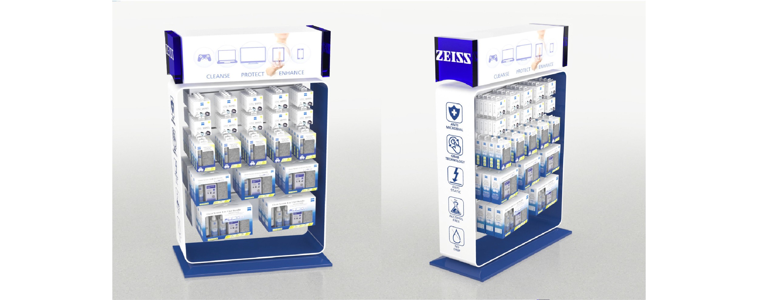 We created a structured point-of-sale concept that aligns with ZEISS’s global brand standards while enhancing in-store communication. The system balances clarity with visual discipline, ensuring product presentation remains the focal point. Layouts, typography and graphic elements were developed to support readability, consistency and modular scalability across retail environments.